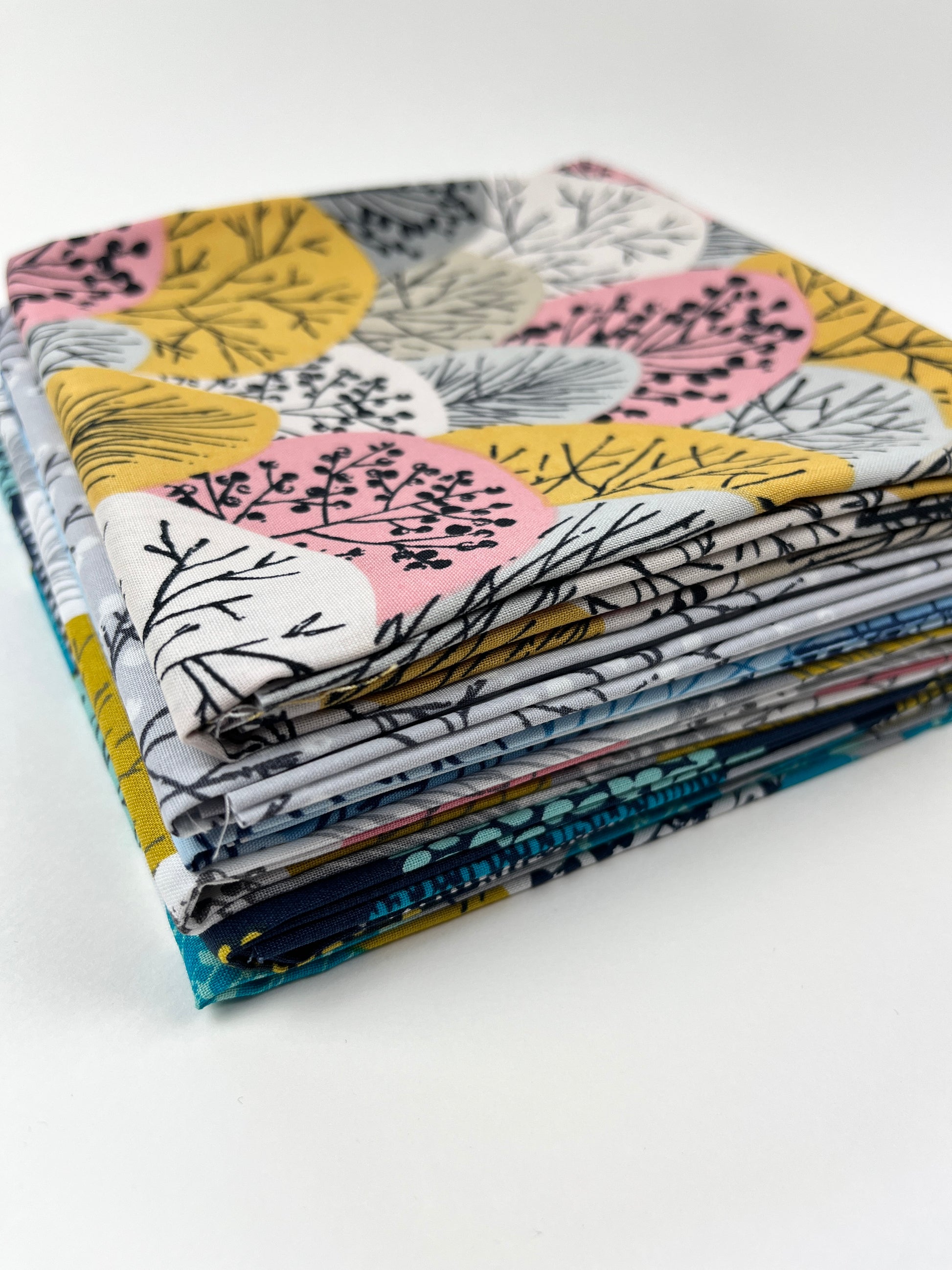FAT QUARTER BUNDLE - Mixed organic quilting cotton fabrics (trees)
