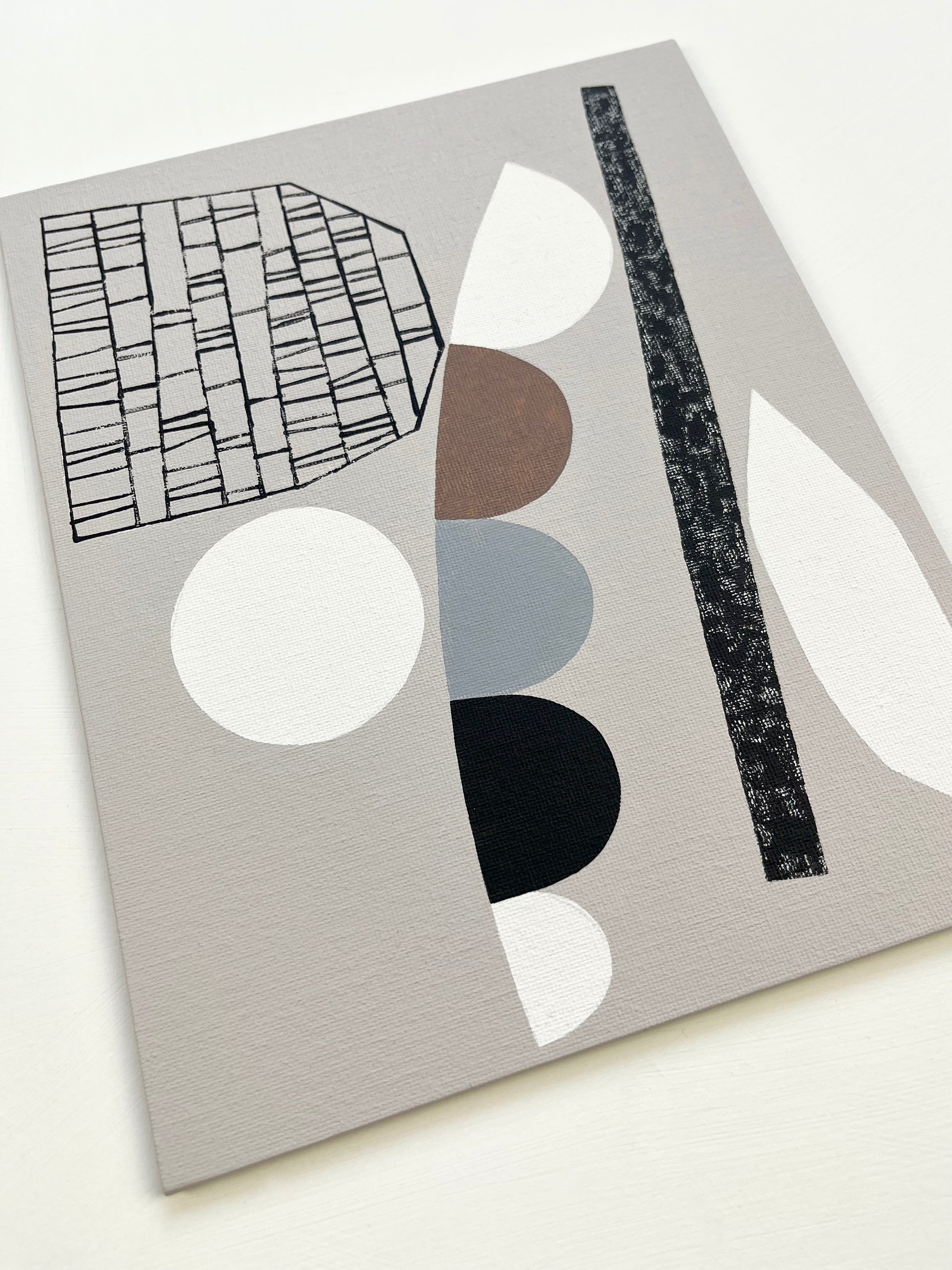 • Acrylic paint on canvas board (please note that this is NOT a stretched canvas, and so framing is required in order to be able to hang the piece. Alternatively, it could be displayed on a shelf).
