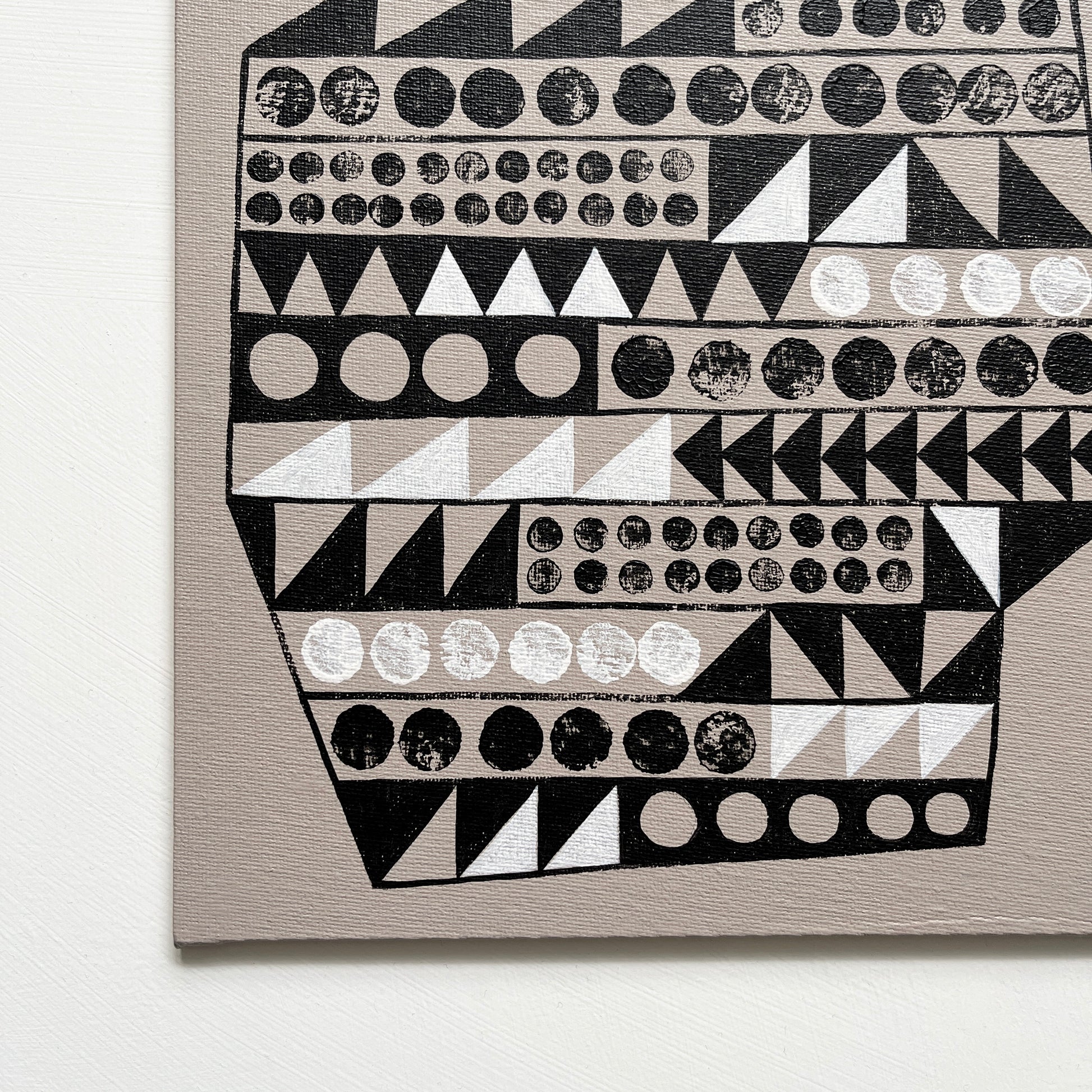 • Acrylic paint on canvas board (please note that this is NOT a stretched canvas, and so framing is required in order to be able to hang the piece. Alternatively, it could be displayed on a shelf).
