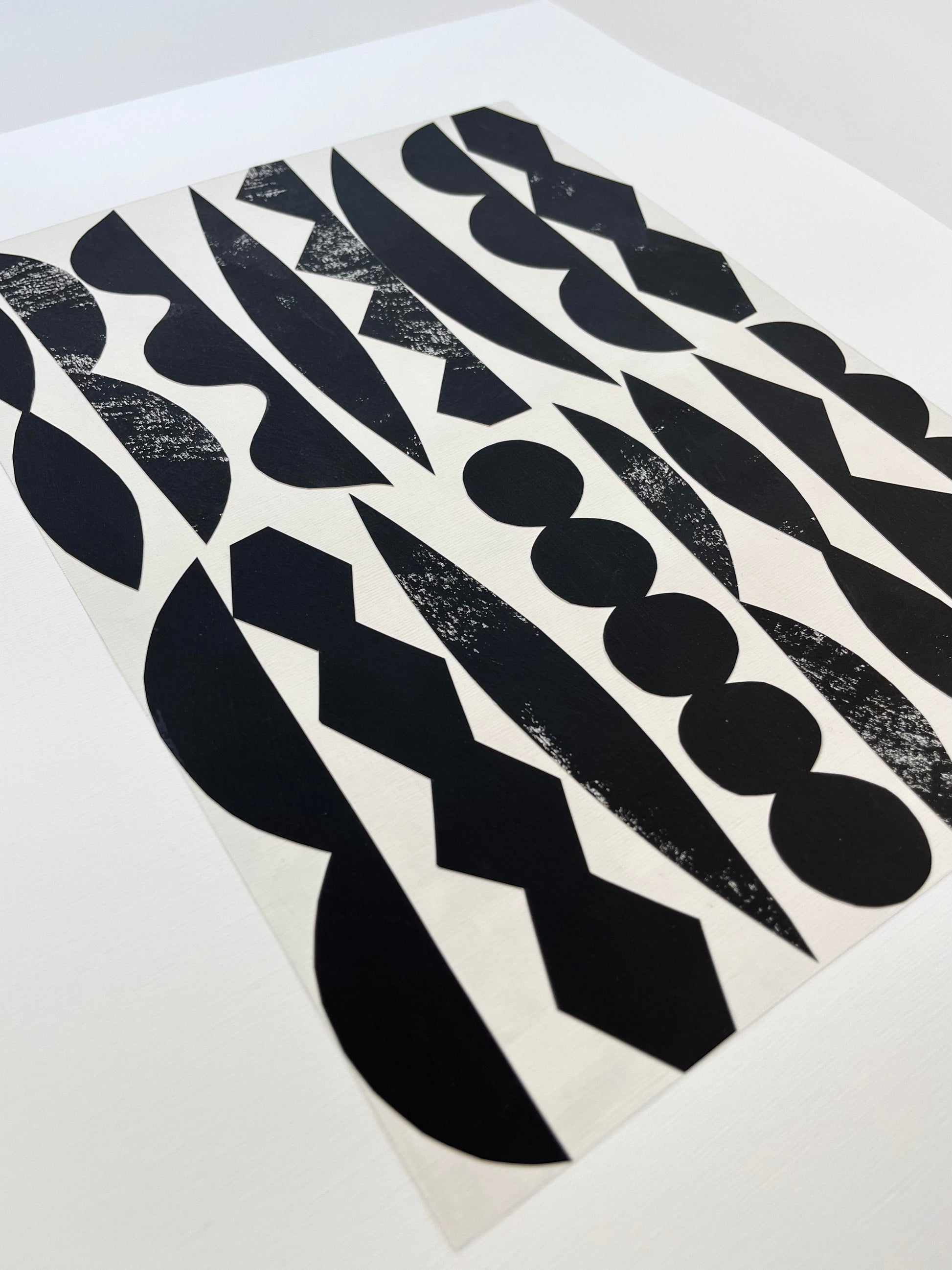 • Acrylic and acrylic painted paper on heavy weight linen-textured paper