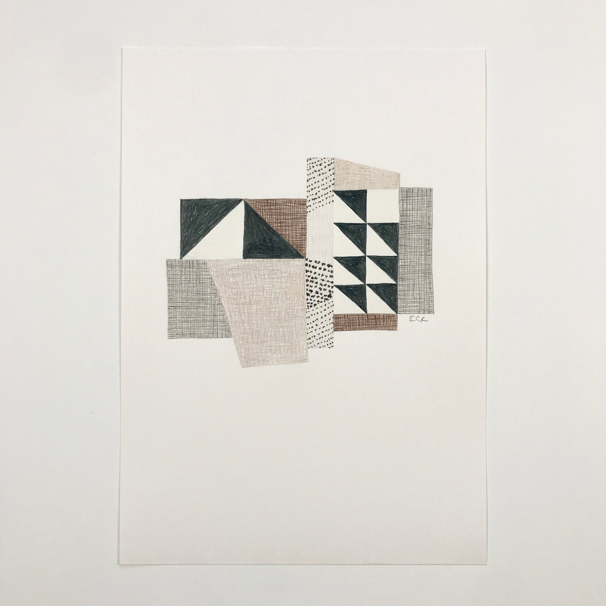 This is an original drawing; one of a series of works based on my stitched textile panels and other imaginary quilts.