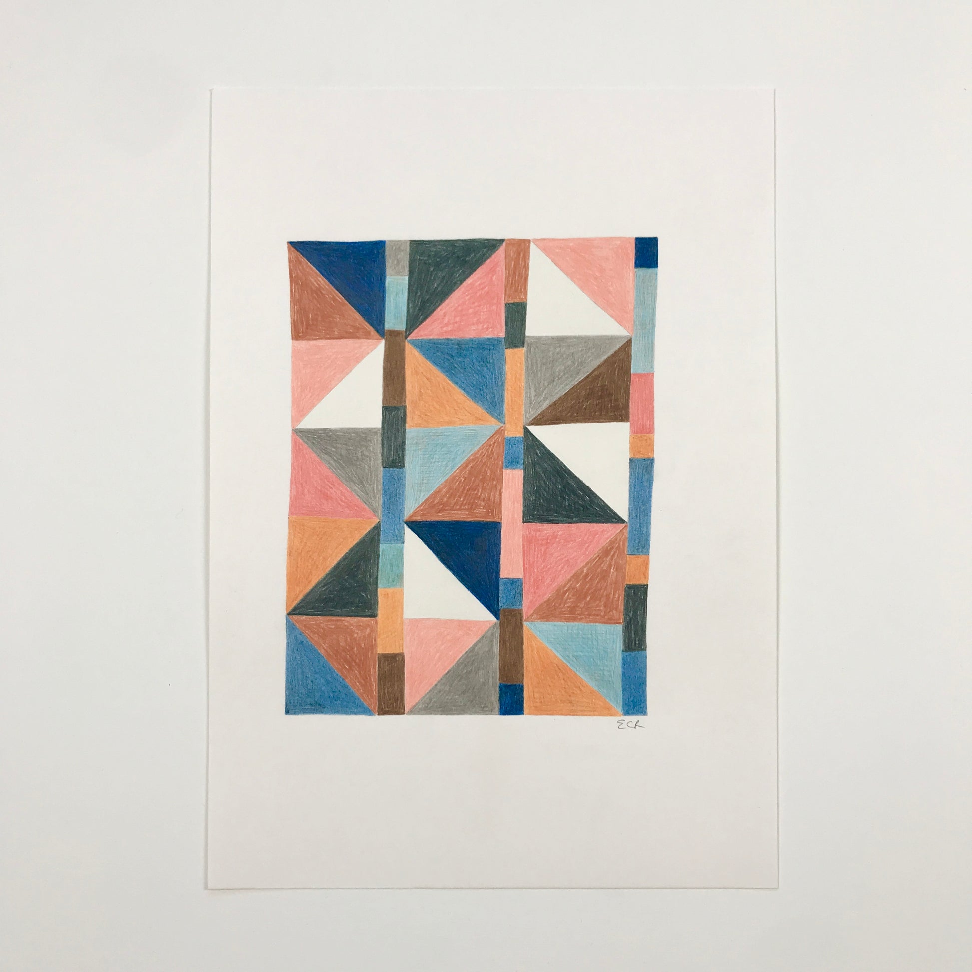 This is an original drawing; one of a series of works based on my stitched textile panels and other imaginary quilts.