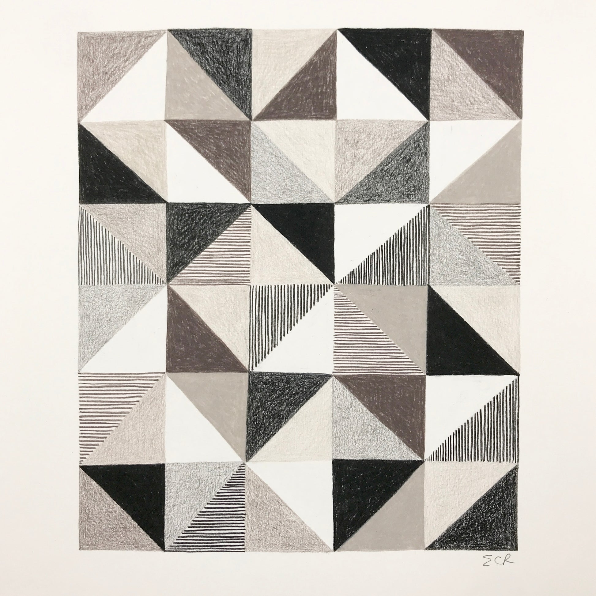 This is an original drawing; one of a series of works based on my stitched textile panels and other imaginary quilts.