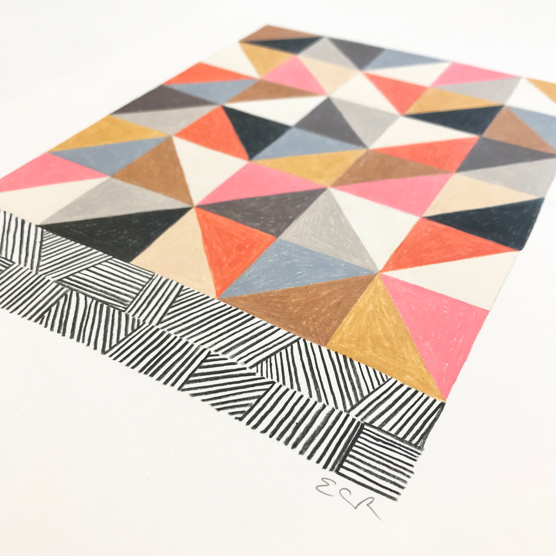This is an original drawing; one of a series of works based on my stitched textile panels and other imaginary quilts.