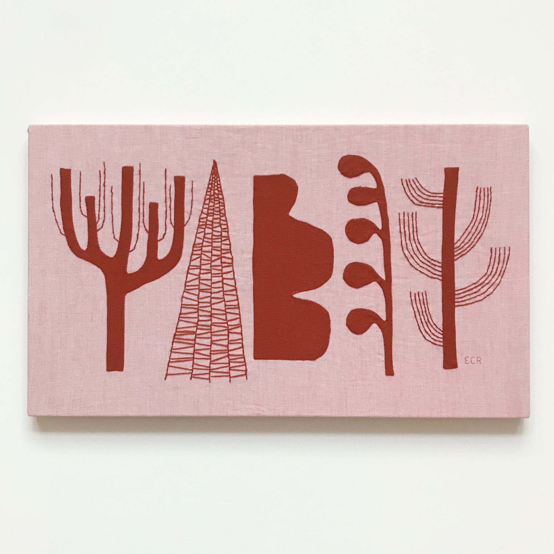 *Please note that in trying to photograph this piece, the colour accuracy isn't as exact as I would wish it to be - although it is as close as possible. The colours are a little warmer in real life - the background pink a touch more "salmon", and the appliquéd elements a more "tomato" red.