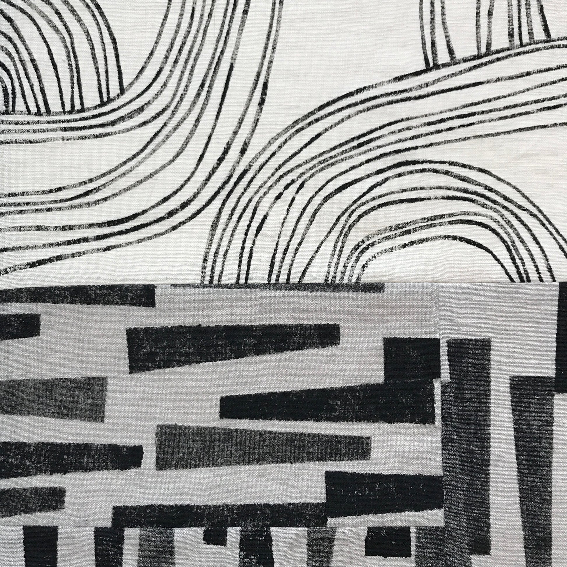 It is a one-off design made from hand painted and printed linens, stitched together by machine and then finished with a hand stitched border hem.